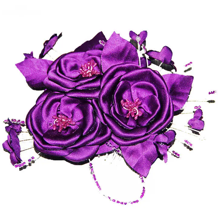 RSB03 Artificial Rose Flower Head Piece Bridal Headwear Purple Satin Headdress Flower Wedding Hair Clip accessories | |