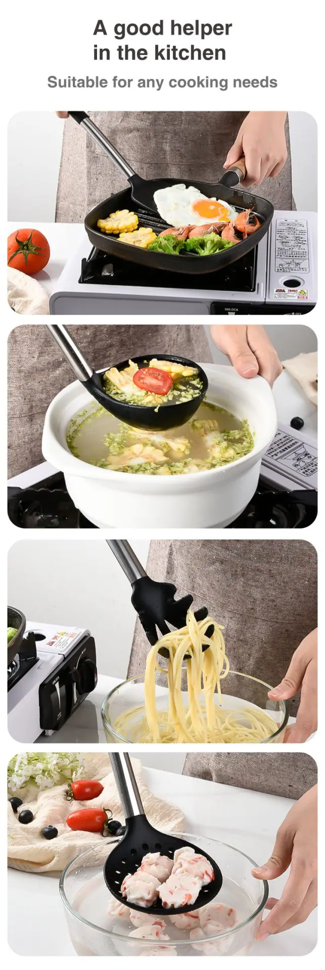 Nonstick, will not scratch the bottom of the pan, kitchen helper.