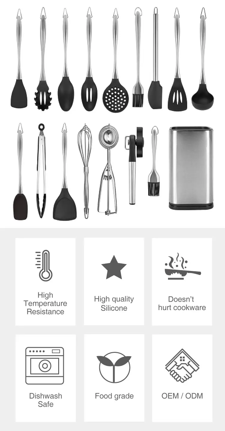 Product name | 15 piece set silicone stainless steel kitchen utensil |
